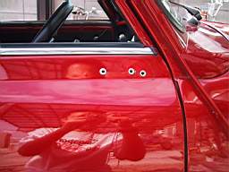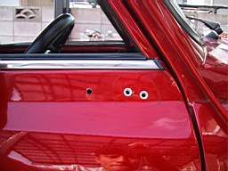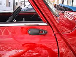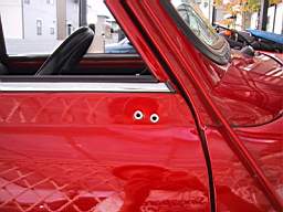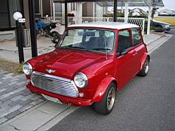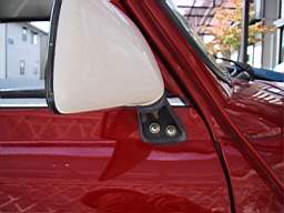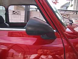前々からクーパー純正の白色ドアミラーがいまいち気に入らなくて、砲弾型のドアミラーに換えたと思っていましたが、ミニ用として売られているのは大抵、アルミか鍍金のヤツで好みに合わない上、高くて手がでず、ずるずると来てました。 しかし、Yahooオークションでビタローニのカリフォルニアミラー(だせぇ名前、本国ではなんて名前なんだろう)を手に入れたので、やっと換えることができました。 入手して早速交換しましたが、ここで教訓「ミラーは水平につけろ」。 純正ミラーの取り付け穴を生かして取り付けようとしたのですが、ホディと干渉するので、少し後ろ上がりにとりつけたら、なんと目いっぱい下に向けないと、ちょうどいい角度にならないことが判明しました。 今は、これでもいいのですが、フルバケに交換するつもりでいるのですが、フルバケにすると今よりシートポジションが下がるので、空しか映らなくなってしまいそうです。 しかも、錆びが怖かったのでナットリベットで取り付けたため、ごまかしが効かないといふ、、、 ちょっと宿題だな、こりゃ