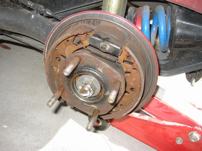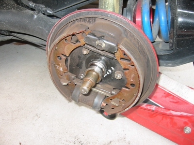 ブレーキドラムを固定しているプラスネジを取り外す。 |