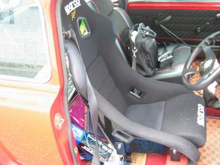 うーん、行きつけのショップで交換したけど、デジカメを忘れたので交換途中の写真なーし。 標準の取り付け位置だと、ショルダー部がドアと干渉するので、8mm程度左に移動しました。 でも、横Gがかかると時々あたるので、もう少し動かさないといかんなー