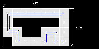 50cm角のタイルカーペットなら、一枚の幅でコースが作れるのではないかと、PCでさくっとレイアウトしてみる。