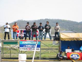 タミグラ中国予選のことが何か発表されてないかと、タミヤのHPをチェックしてたら以外な情報が、、、 タミヤチャレンジカップが3月26日にフジモデルサーキットで開催されるらしい、びつくりだなもし。 なんでこんなローカルなところであるんだろう(失礼>フジモデル殿) しかし、これは参加すべきでしょう、こんなチャンスはそうそうないしねぇ。 ということで、フジモデルに連絡を取ると、大体タミグラと同じレギュとのことなので、スポチュン、ギヤ比固定のGT2にエントリー。 世界チャンプも荻原くんくるらしいので、チャンプの走りもまた拝見できそうだし、、、 しかし、このレースレポートは開催から 一ヶ月以上経過してから書いているので、各ヒートの詳細はすっかり忘れた。 (レポートの意味ないじゃんか>俺) しかも各予選の結果を撮ったデジカメのファイル消しちゃってるし、、、いかん。