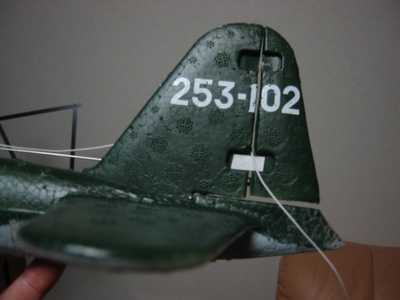 そこで、ノーマルのヒンジに切れ目を入れて飛ばしてみたが、今度は右にも旋回できるもののラダーが残ってしまい、