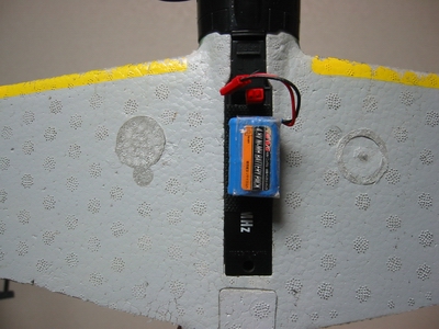 更に胴体後部のバラストを取り出し、、バッテリーをマジックテープで腹に抱かせてます。